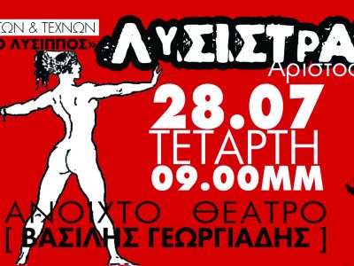 Στο Ξυλόκαστρο 28 Ιουλίου η Λυσιστράτη”, από τον σύλλογο Φίλοι Γραμμάτων και Τεχνών “Ο Λύσιππος”
