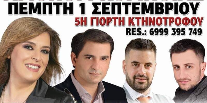 5η Γιορτή Κτηνοτρόφου 1η Σεπτεμβρίου 2022 του Αγίου Μάμα στο Αγιονόρι Κορινθίας στην πλατεία του χωριού, μαζί με Γωγώ Τσαμπά, Κώστα Τσαρουχά, Παναγιώτης Πετεινός και Κλαρίνο ο Νεκτάριος Κοκκώνης.