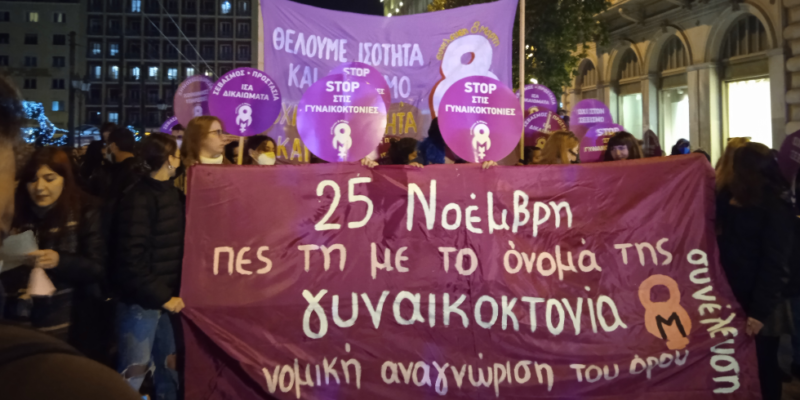 Αγωνιζόμαστε ώστε το φεμινιστικό κίνημα να δυναμώσει και να απαντήσει με το μεγαλύτερο δυνατό εύρος της φωνής του. Μέχρι την πλήρη εξάλειψη της πατριαρχίας, της κατίσχυσης της ισότητας των φύλων και την πλήρη επικράτηση της κοινωνικής δικαιοσύνης», σημειώνει η Πρωτοβουλία κατά των Γυναικοκτονιών, που καλεί επίσης στη συγκέντρωση στην Πλατεία Κλαυθμώνος, στις 6 μ.μ., και πορεία προς τη Βουλή.