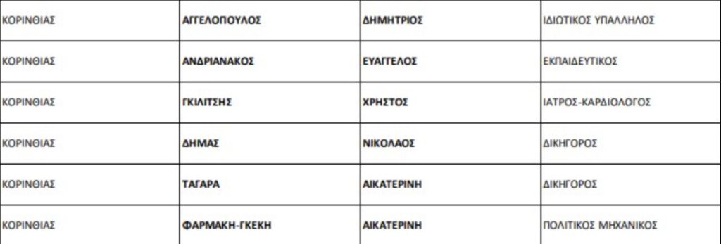 Δείτε τον πίνακα με τους υποψήφιους για το νομό Κορινθίας