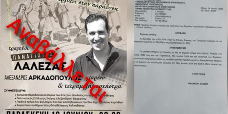 Ο Δήμος Βέλου – Βόχας ανακοίνωσε πως “λόγω του τραγικού ναυαγίου της 14ης Ιουνίου στα διεθνή ύδατα ανοικτά της Πελοποννήσου, η χώρα μας κηρύχθηκε σε εθνικό πένθος μέχρι και την Παρασκευή 16 Ιουνίου. Ως ένδειξη πένθους, η αυριανή μας εκδήλωση στην κοινότητα Βέλου αναβάλλεται. Θα ορισθεί εκ νέου ημερομηνία πραγματοποίησης της.”