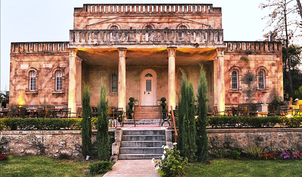 Ο Αγγελος Σικελιανός μαζί με τη σύζυγό του, την κατά πολλά χρόνια μεγαλύτερή του, βαθύπλουτη Αμερικανίδα αστή Εύα Πάλμερ, πηγαίνουν εκδρομή, το 1908, στην περιοχή της Κορινθίας και μαγεύονται από τη φυσική ομορφιά του πευκοδάσους και της θάλασσας. Το 1912 ξεκινάει η κατασκευή του μοναδικού αυτού κτιρίου σε σχέδιο του μεγάλου λόγιου. Οι ρυθμοί και οι τεχνοτροπίες δένουν αρμονικά μεταξύ τους. Οι κίονες είναι εμπνευσμένοι από την αρχαιοελληνική αρχιτεκτονική, τα παράθυρα και τα ανοίγματα είναι στοιχεία βυζαντινής κουλτούρας, ενώ τα μπαλκόνια αποτελούν χαρακτηριστικά γνωρίσματα της ενετικής νοοτροπίας. Οι πωρόλιθοι μεταφέρονται με τον Μουτζούρη, το τρένο της εποχής. Η βίλα ολοκληρώνεται το 1916, θεωρείται εξαιρετικά εκκεντρική για την εποχή και αντικατοπτρίζει την οικονομική άνεση του ζευγαριού. Στην ουσία, αποτελεί ένα οικιστικό κόσμημα που εντάσσεται στη λίστα με τα κτίρια της χώρας που αξίζει να επισκεφτούμε έστω μια φορά. Μια ελληνική κατοικία που αγγίζει τη μεγαλοπρέπεια της ευρωπαϊκής αριστοκρατίας.