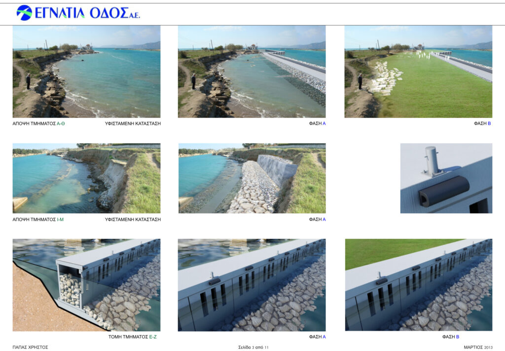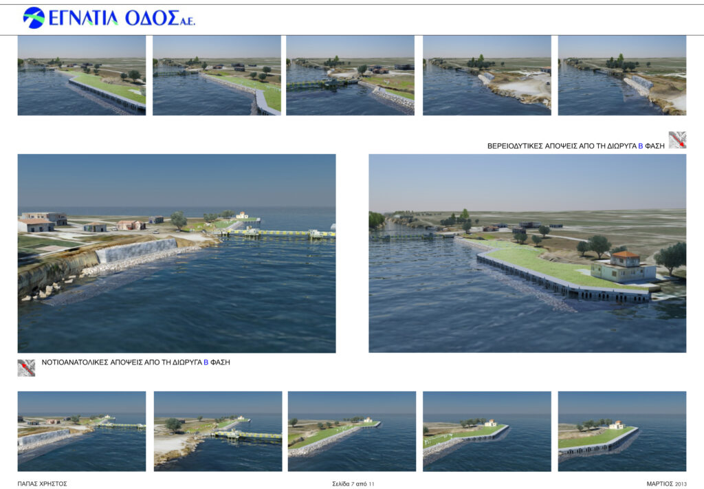 - Τα λιμενικά έργα προστασίας της στεριάς έναντι διάβρωσης με στόχο την ανάπλαση του υποβάθρου έδρασης του μνημείου.