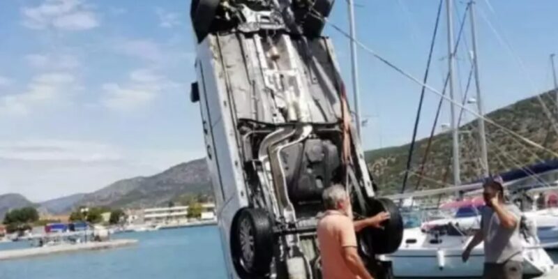 Τυχερός μέσα στην ατυχία του στάθηκε ηλικιωμένος οδηγός μιας και το όχημα του κατα την πτώση του έπεσε πάνω σε σκάφος με αποτέλεσμα να προλάβει να βγει έξω