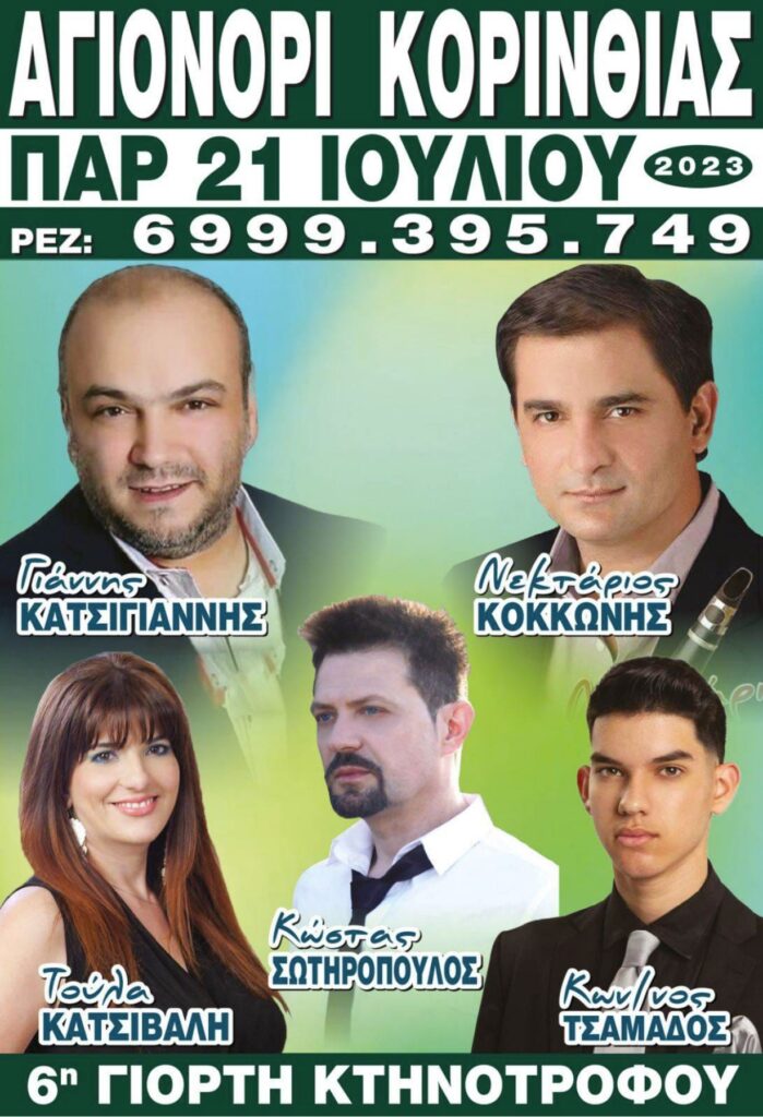 ΚΟΙΝΩΝΙΑ Σύλλογος Αγιονορίου”Ο Νικηταράς”: 6η Γιορτή Κτηνοτρόφου Παρασκευή 21 Ιουλίου By sikionia 08/July/2023 Share 0 Η πολιτιστική γιορτή θεσμός στην κορινθία έρχεται Παρασκευή 21 Ιουλίου 6η Γιορτή Κτηνοτρόφου με παραδοσιακά προΐόντα χορό και κέφι. Σας περιμένουμε όλους.