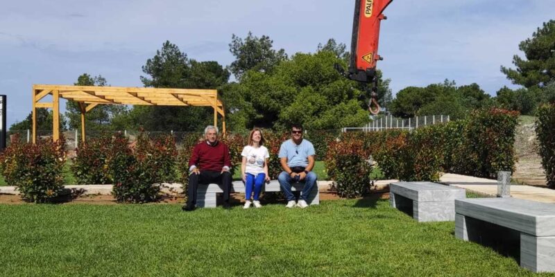 Για το σκοπό αυτό δημιούργησε τελευταία και υπαίθρια καθιστικά με μαρμάρινα παγκάκια τοποθετημένα ελεύθερα πάνω στη επιφάνεια του γκαζόν.