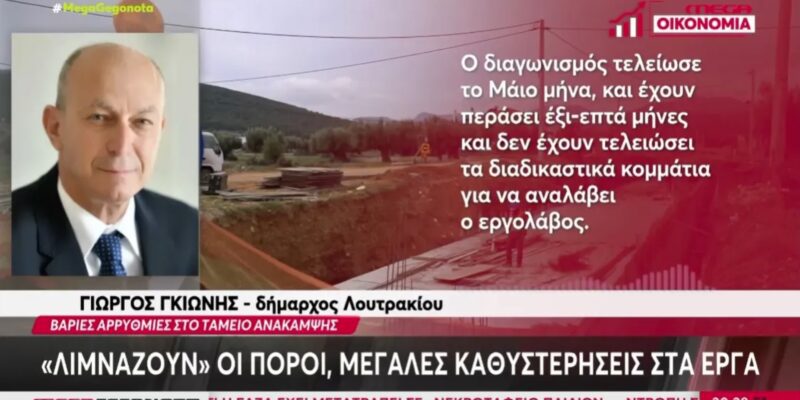 Σφοδρή κριτική ασκεί στην Κυβέρνηση τόσο η εφημερίδα “Το Βήμα” όσο και το τηλεοπτικό κανάλι Mega, αμφότερα συμφερόντων Βαγγέλη Μαρινάκη, με αφορμή τα αντιπλημμυρικά έργα που απεντάχθηκαν από το Ταμείο Ανάκαμψης, λόγω καθυστερήσεων. Μεταξύ των έργων που χάθηκαν και αυτό του Λουτρακίου, με το Δήμαρχο Λουτρακίου – Περαχώρας – Αγίων Θεοδώρων, Γιώργο Γκιώνη, να φιλοξενείται στο Κεντρικό Δελτίο Ειδήσεων του Mega…