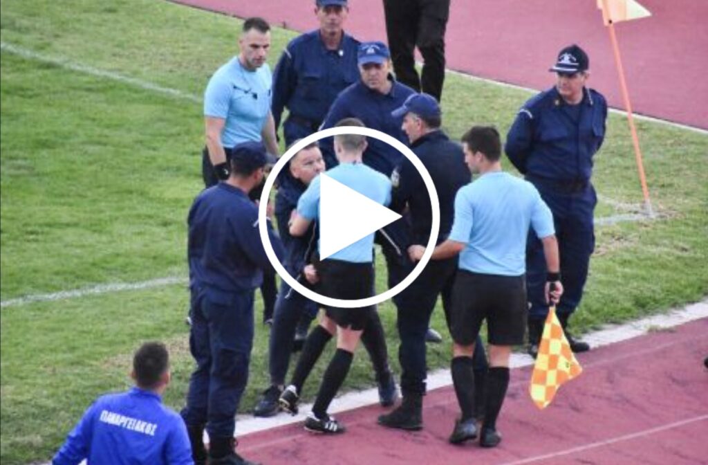 Οι αστυνομικές δυνάμεις συγκράτησαν τον μαινόμενο πρόεδρο της Κορίνθου, που ήταν σε έξαλλη κατάσταση, με τον διαιτητή να απομακρύνεται από τον αγωνιστικό χώρο, όμως ο Αλέξης Κούγιας έδωσε συνέχεια στο θέμα.