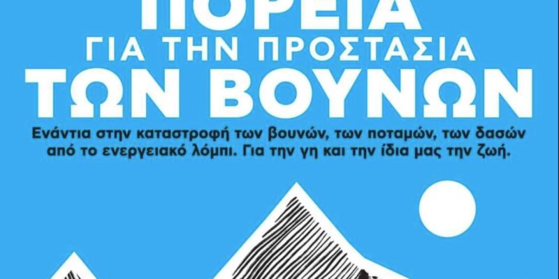 Μπορεί να είναι εικόνα κείμενο που λέει "ΠΟΡΕΙΑ ΓΙΑ ΤΗΝ ΠΡΟΣΤΑΣΙΑ ΤΩΝ ΒΟΥΝΩΝ Ενάντια στην καταστροφή των βουνών, των ποταμών, των δασών από To ενεργειακό λόμπι. Για την γη και την ίδια μας την ζωή. Δευτέρα 11 Δεκεμβρίου 19:00, Μοναστηράκι ΠΡΩΤΟΒΟΥΛΙΕΣ ΤΩΝΒΟΥΝΩΝ."