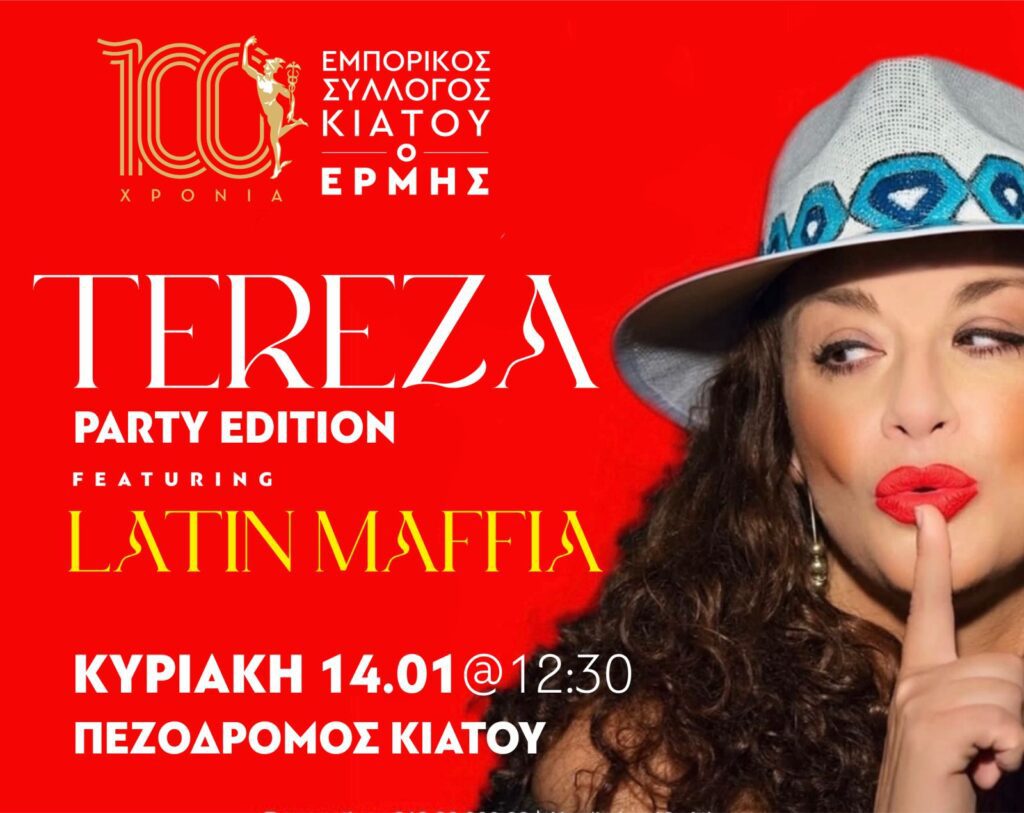 ΚΟΙΝΩΝΙΑ TEREZA LIVE για τα 100 χρόνια του Εμπορικού Συλλόγου ΚΙΑΤΟΥ By sikionia 13/January/2024 Share 0 Η μοναδική TEREZA θα μας ταξιδέψειμε με την αισθαντική φωνή της σε ένα party για τα 100 χρόνια του ΕΜΠΟΡΙΚΟΥ ΣΥΛΛΟΓΟΥ ΚΙΑΤΟΥ. Την Κυριακή 14/01 στις 12:30 στον ΠΕΖΟΔΡΟΜΟ ΚΙΑΤΟΥ!