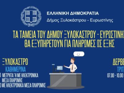 Δήμος Ξυλοκάστρου: Ώρες και Τρόποι Πληρωμών στα ταμεία