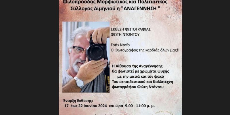 ΚΟΡΙΝΘΙΑ Έκθεση φωτογραφίας του Φώτη Ντόντου στο Διμηνιό By sikionia_edit 14/June/2024 Share 0 Έκθεση φωτογραφίας του Φώτη Ντόντου στο Διμήνιο