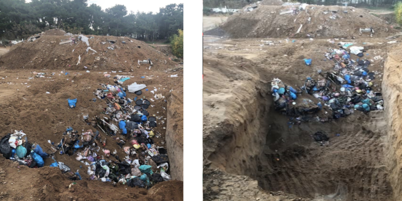 «Χαίρετε. Οι εικόνες που βλέπετε είναι μέσα από το στρατόπεδο δίπλα στη δομή. Έχουν θαφτεί πάνω από 100 τόνοι επικίνδυνα σκουπίδια και ενδεχομένως και κάποια επιστρεφόμενα (ραδιενεργά). Καλό Σαββατοκύριακο.»