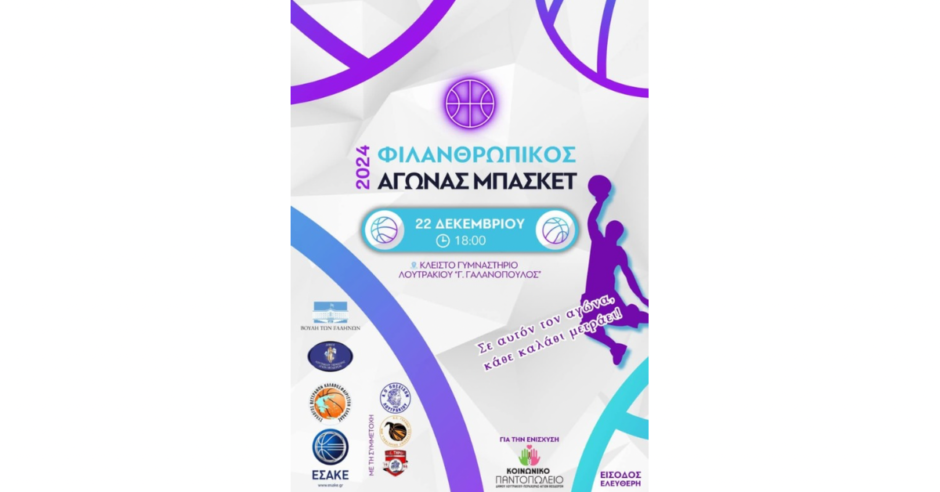Σας προσκαλούμε στον αγώνα μπάσκετ φιλανθρωπικού χαρακτήρα για την ενίσχυση του Κοινωνικού Παντοπωλείου του Δήμου Λουτρακίου – Περαχώρας – Αγίων Θεοδώρων.