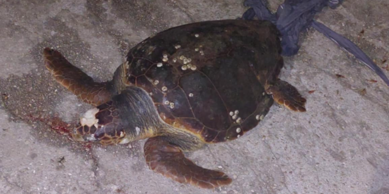 Το αποτρόπαιο θέαμα αντίκρισαν έκπληκτοι περαστικοί, οι οποίοι περπατούσαν στον βραχίονα του λιμανιού και είδαν τη νεκρή χελώνα να κείτεται αβοήθητη πάνω στο τσιμέντο. Το γεγονός προκάλεσε θλίψη αλλά και πολλά ερωτήματα σχετικά με το πώς βρέθηκε εκεί και ποια ήταν η αιτία θανάτου της.