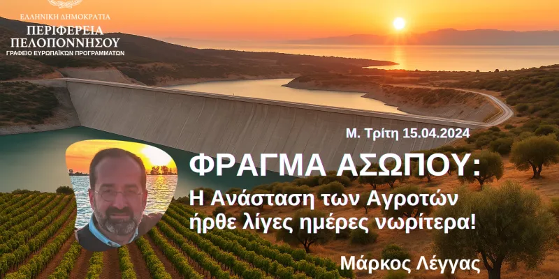 Με ανακούφιση υποδέχτηκαν όλοι οι Κορίνθιοι την είδηση πως το Φράγμα Ασωπού παίρνει ξανά μπροστά. Ο περιφερειακός σύμβουλος Μάρκος Λέγγας, ένας από τους ανθρώπους που καταλαβαίνουν όσο λίγοι την σημασία του έργου αυτού έκανε το ακόλουθο σχόλιο στο λογαριασμό του στα social media:
