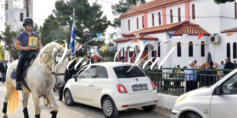 Τη λιτανεία συνόδευσαν με επισημότητα επίλεκτοι αναβάτες από την παράδοση των καβαλάρηδων της περιοχής. Καβάλα σε στολισμένα άλογα, οι ιππείς προπορεύθηκαν της πομπής, συμβολίζοντας την πατροπαράδοτη τιμή προς τον Άγιο, προσδίδοντας δε επιπλέον επισημότητα και ιστορική διάσταση στην εκδήλωση. Πλήθος πιστών – οικογένειες, ηλικιωμένοι αλλά και νέοι – ακολούθησε σε κλίμα ευλάβειας, ψάλλοντας παρακλητικούς κανόνες και ψαλμούς καθ’ όλη τη διαδρομή.