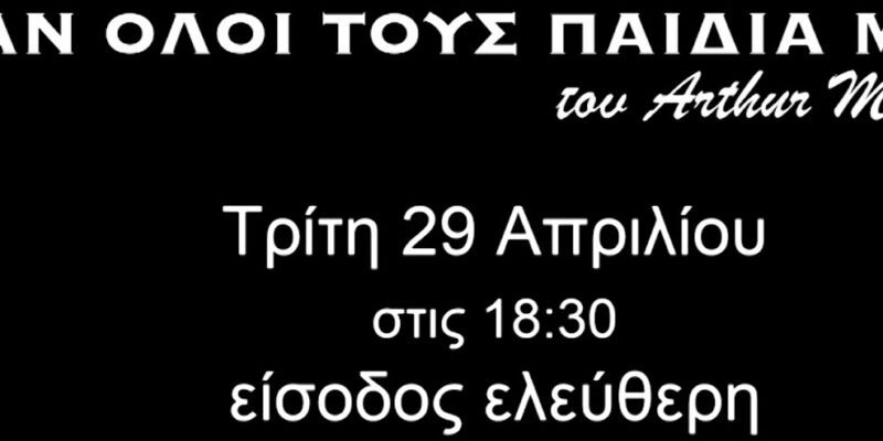 To «Θέατρο σε Φόρμα» παρουσιάζει, στο Δημοτικό Θέατρο Κορίνθου «Θωμάς Θωμαΐδης» αυτή την φορά, το αριστούργημα του Άρθουρ Μίλλερ «Ήταν όλοι τους παιδιά μου», σε σκηνοθεσία Τάκη Τσαρσιταλίδη.