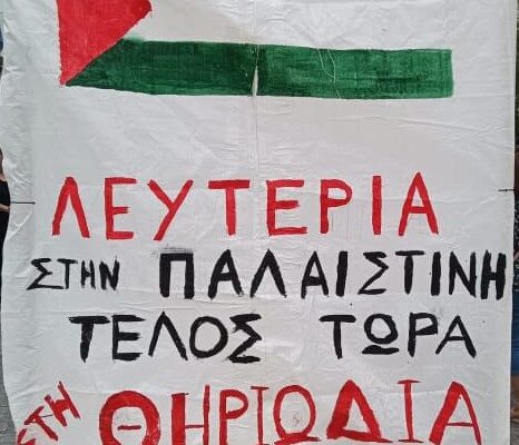 «Δεν μπορούμε να μένουμε απαθείς μπροστά σε έναν λαό που πεθαίνει από τις βόμβες και την πείνα. Η σιωπή είναι συνενοχή», τόνισαν οι διαδηλωτές, προσθέτοντας πως «η αλληλεγγύη είναι το όπλο των λαών».