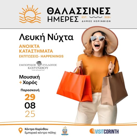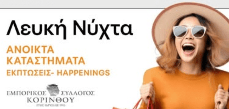 Η καρδιά της Κορίνθου θα χτυπήσει δυνατά την Παρασκευή 29 Αυγούστου 2025, καθώς ο Εμπορικός Σύλλογος Κορίνθου σε συνδιοργάνωση με τον Δήμο Κορινθίων (Αντιδημαρχία Πολιτισμού – Τουρισμού) και την Ένωση Κορινθιακών Επισιτιστικών Επιχειρήσεων, διοργανώνει την καθιερωμένη Λευκή Νύχτα.