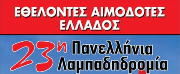 Για 23η συνεχή χρονιά, η Πανελλήνια Ομοσπονδία Συλλόγων Εθελοντών Αιμοδοτών (ΠΟΣΕΑ), σε συνεργασία με το Υπουργείο Υγείας & Κοινωνικής Αλληλεγγύης, το Εθνικό Κέντρο Αιμοδοσίας, την Ελληνική Ομοσπονδία Θαλασσαιμίας και την Κεντρική Ένωση Δήμων Ελλάδος (ΚΕΔΕ), διοργανώνει την Πανελλήνια Λαμπαδηδρομία Εθελοντών Αιμοδοτών.