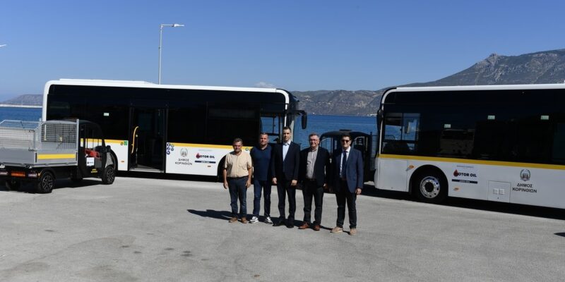 Δύο αστικά ηλεκτρικά λεωφορεία και τρία ηλεκτρικά οχήματα παραδόθηκαν σήμερα, στον Δήμο Κορινθίων με δωρεά του Βαρδινογιάννειου Ιδρύματος και της Motor Oil.