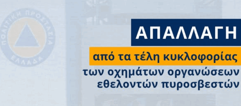 «Επεκτείνουμε τη στήριξή μας και στα τέλη κυκλοφορίας. Αναγνωρίζουμε εμπράκτως την προσφορά των εθελοντών που προστατεύουν τη χώρα μας από τις πυρκαγιές».