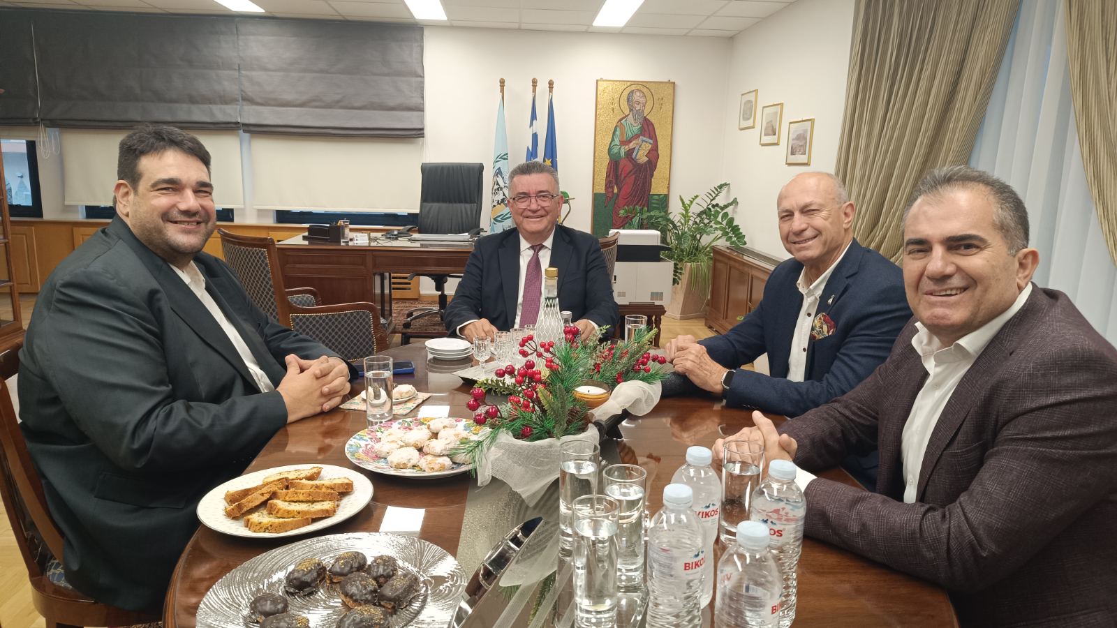 Νωρίτερα, ο Δήμαρχος Κορινθίων Νίκος Σταυρέλης υποδέχθηκε στο Δημαρχείο τον Υπουργό Εσωτερικών Θεόδωρο Λιβάνιο, τον Δήμαρχο Καλαμάτας & Πρόεδρο ΠΕΔ Θανάση Βασιλόπουλο, τον Δήμαρχο Λουτρακίου – Περαχώρας- Αγ. Θεοδώρων Γιώργο Γκιώνη και τον Γενικό Γραμματέα της ΚΕΔΕ Δημήτρη Καφαντάρη.