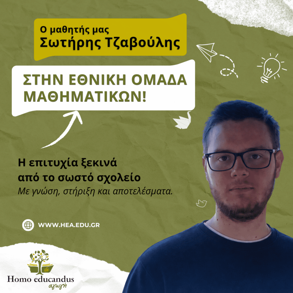 Ο μαθητής της Γ’ Λυκείου του Homo Educandus Αγωγή, Σωτήρης Τζαβούλης, επιλέχθηκε να συμμετάσχει στην Εθνική Ομάδα Μαθηματικών της Ελλάδας, η οποία θα εκπροσωπήσει τη χώρα μας στη 43η Βαλκανική Μαθηματική Ολυμπιάδα (BMO) 2026.