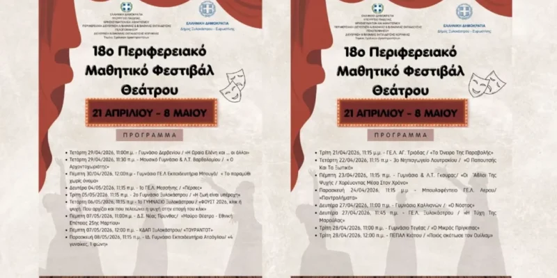 Σημείο συνάντησης της μαθητικής δημιουργίας και της θεατρικής έκφρασης γίνεται για ακόμη μία χρονιά το Ξυλόκαστρο, καθώς από τις 21 Απριλίου έως και τις 8 Μαΐου 2026 φιλοξενεί το 18ο Περιφερειακό Μαθητικό Φεστιβάλ Θεάτρου.