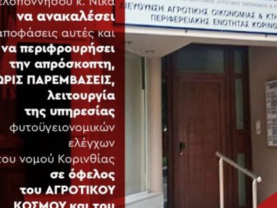 Σε μια σημαντική κίνηση προχώρησαν οι τρεις από τους έξι δήμους της Κορινθίας συνυπογράφοντας αίτημα προς τον Υπουργό Αγροτικής Ανάπτυξης και Τροφίμων κ. ...