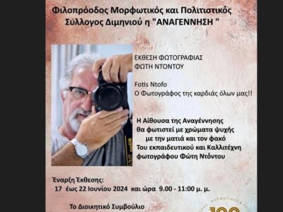 ΚΟΡΙΝΘΙΑ Έκθεση φωτογραφίας του Φώτη Ντόντου στο Διμηνιό Έκθεση φωτογραφίας του Φώτη Ντόντου στο Διμήνιο By sikionia_edit14/June/20240