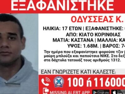 Συναγερμός για την εξαφάνιση 17χρονου στο Κιάτο – Κίνδυνος για τη ζωή του