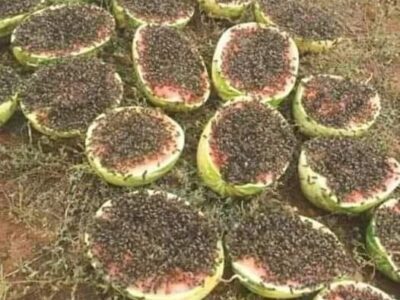 “Οι μέλισσες παίρνουν τα θρεπτικά συστατικά τους από οτιδήποτε έχει ζάχαρη και υγρασία. Το να ταΐζεις καρπούζι αν οι συνθήκες είναι δύσκολες είναι ...