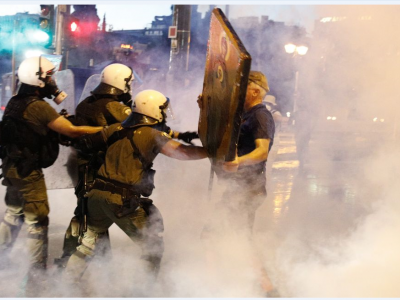 Ένας πράκτορας της συνοριακής περιπολίας των ΗΠΑ αρπάζει το πουκάμισο ενός Αϊτινού ενώ προσπαθεί να εμποδίσει τους μετανάστες στα σύνορα ΗΠΑ-Μεξικού να περάσουν ...